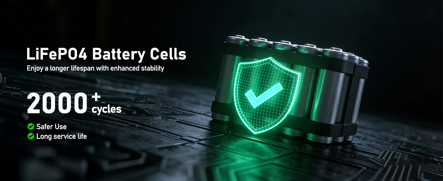 - Built to Last: LiFePO4 battery cells offer 3000+ cycles (approx. 10 years of use).